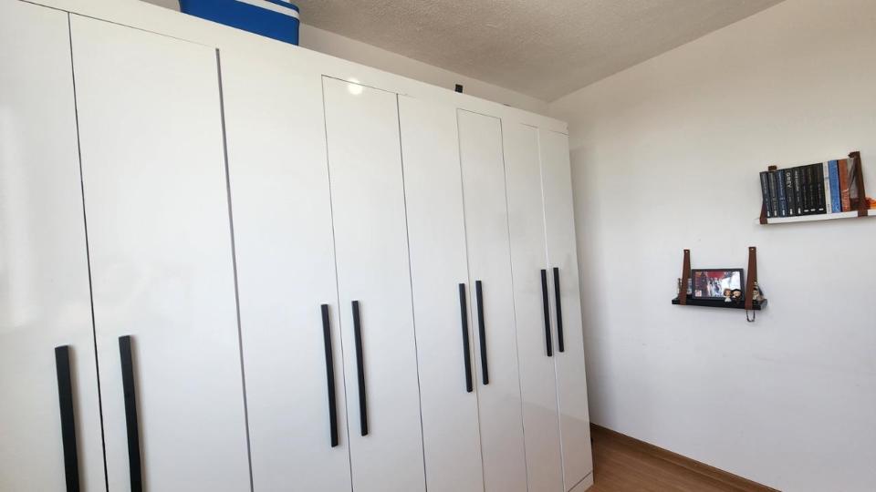Este apartamento no 4º andar possui dois quartos, banheiro social com box,